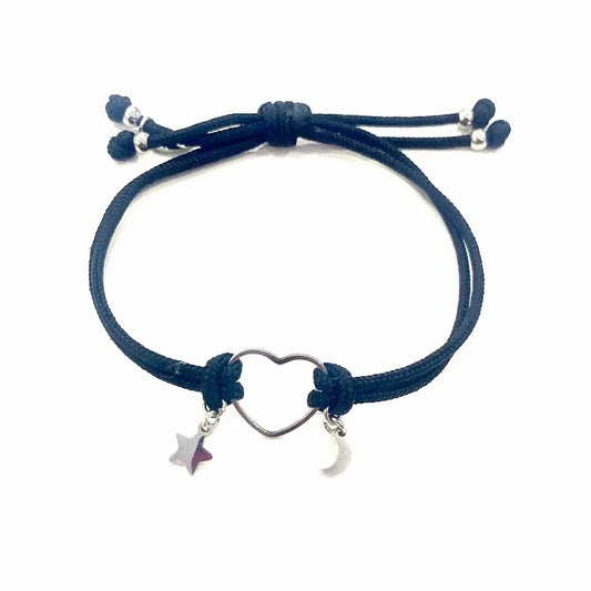 Pulsera Corazón Estrella y Luna Plata💗